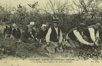 Fin septembre - début octobre, à genoux dans les sillons pendant des journées entières, on arrache les pommes de terre et on les trie soigneusement pour ne laisser que les plus petites aux cochons. Cette culture, entreprise à Belle-Ile en 1761, ne fut introduite sur le continent que 30 ans plus tard au moment des disettes de la révolution, et ne fut généralisée que sous la Restauration.
