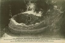 Monument Gaulois circulaire, découvert sous un tumulus, par l’Archéologue Le Brigand, à Nilizienn, en Silfiac (Morbihan) et réédifié par ses soins dans le Square de l’Eglise St-Louis, à Pontivy. Dans