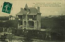 Arrivée du "Rapide" à l’arrêt de Port en Dro transportant les premiers baigneurs au mois d’Avril 1911 : au fond les Villas Chimère et Carmen