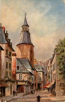 Dinan. Cette Ville est bâtie sur le sommet et le versant d’un promontoire escarpé. De l’embarcadère des bateaux elle se présente sous un aspect pittoresque avec ses vieilles murailles féodales et ses
