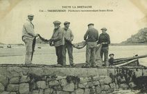 Pêcheurs racommodant leurs filets