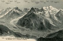 La chaîne du Mont-Blanc, vue du sommet du Brévent, 2525m (d’après le dessin)