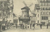 L’éditeur a fait imprimer une note explicative au dos de la cart: En 1889, s’ouvre dans le quartier de Pigalle, sur le flanc de la Butte Montmartre, le bal du Moulin Rouge. On y vient pour s’amuser mais surtout pour admirer la danse sauvage - connue plus tard sous le nom de Franch cancan - du quadrille naturaliste composé de Grille d’égoût, Nini patte en l’air, la Mélénite, la Sauterelle, la Môme Fromage et la Goulue. C’est elle qui apostrophe, un soir, le futur Edouard VII, venu en spectateur: Alors de Galles ! tu payes le champagne? A la fin de sa vie, alcoolique et sans le sou, la Goulue tenait une petite baraque foraine décorée par Toulouse Lautrec qui l’avait autrefois immortalisée sur une affiche fameuse entre toutes.